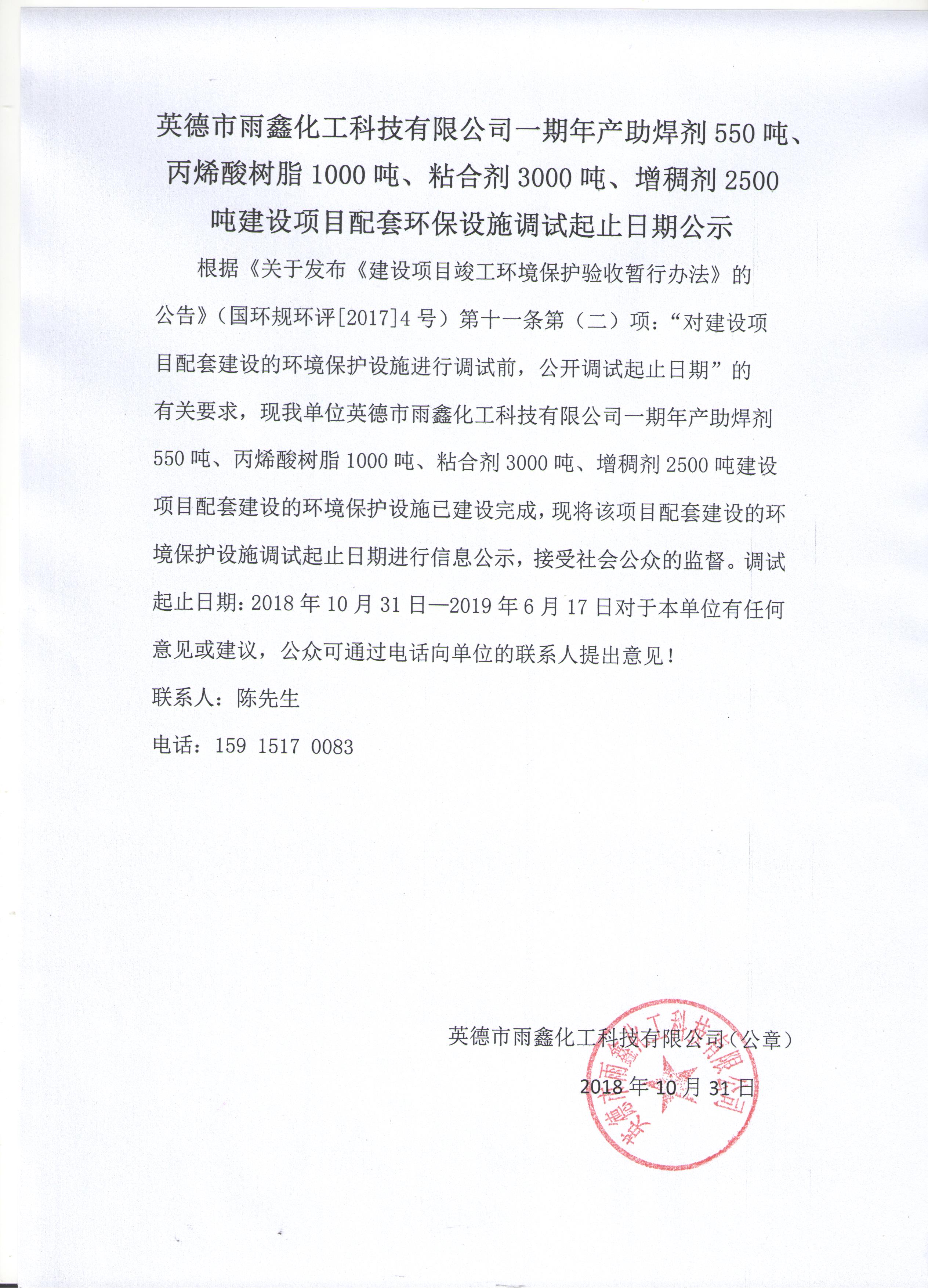 下一页: 关于英德市雨鑫化工科技有限公司一期年产助焊剂550吨、丙烯酸树脂1000吨、粘...