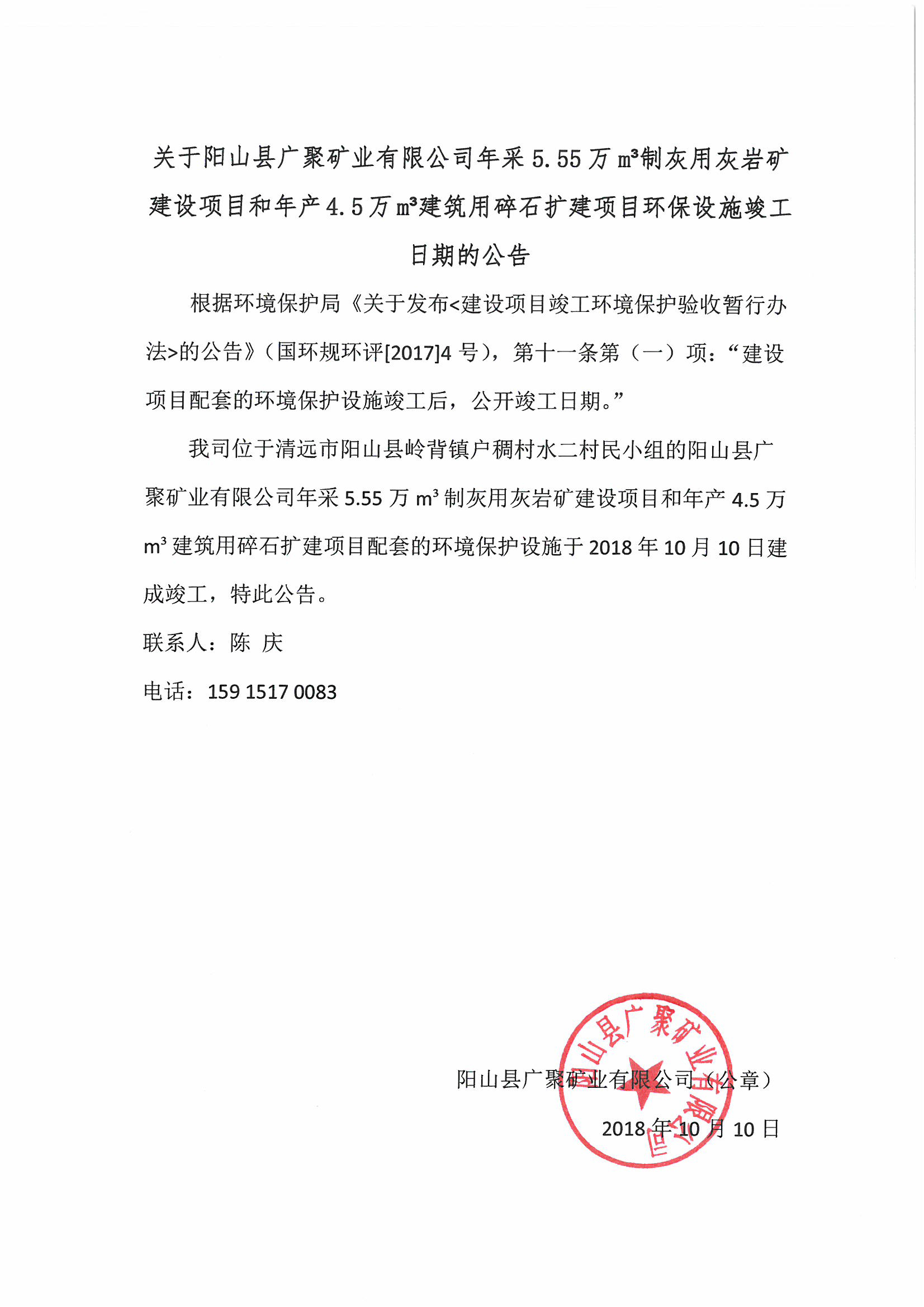 下一页: 阳山县汇成钙业有限公司年产10万吨非金属粉体材料建设项目一期工程配套建设...