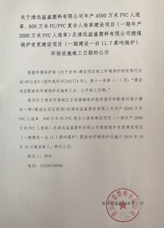 上一页:关于清远溢盛塑料有限公司年产4500万米PVC人造革、600万米PU/PVC复合人造革建设...