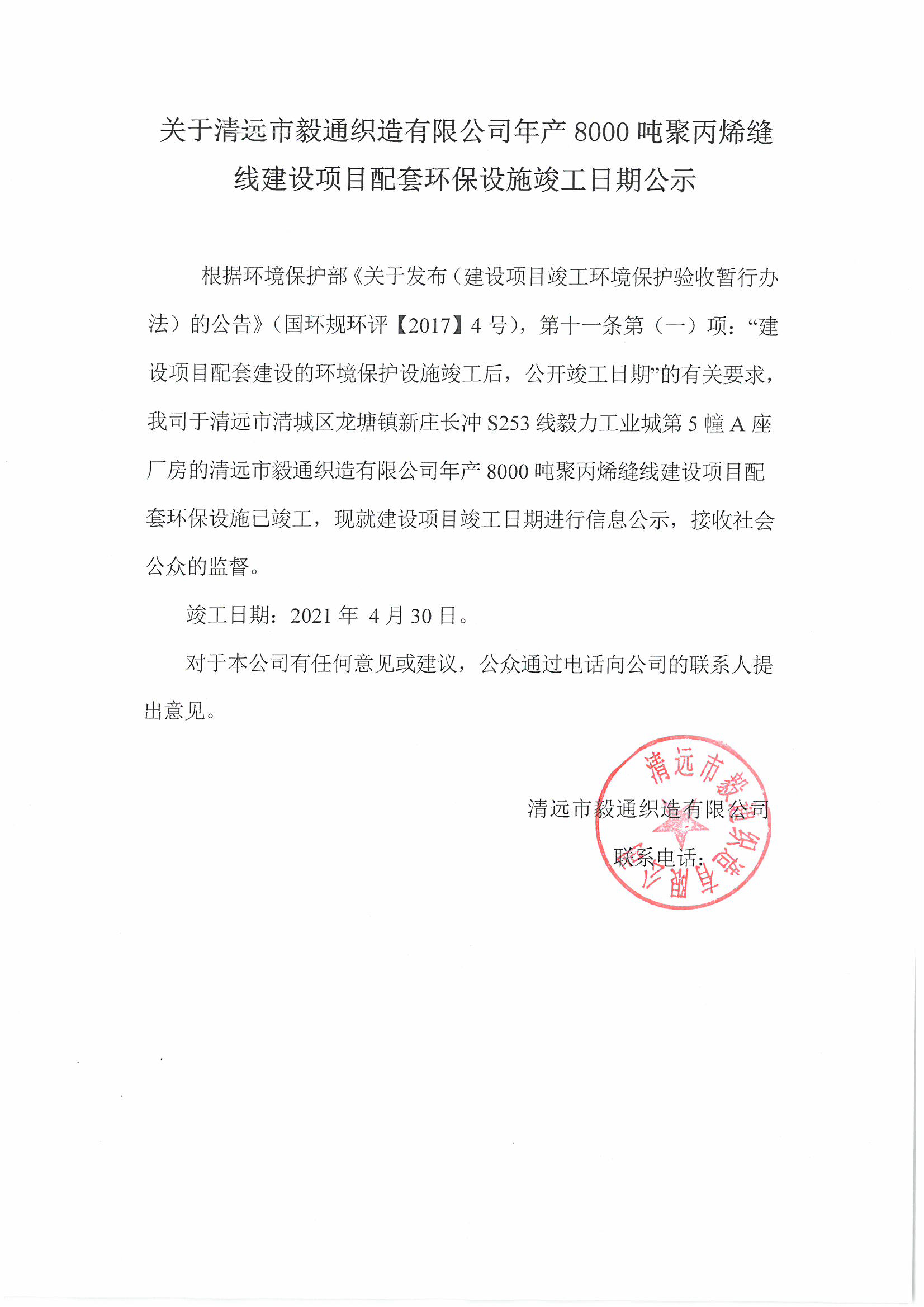 上一页:关于清远市毅通织造有限公司年产8000吨聚丙烯缝线建设项目配套环保设施调试...